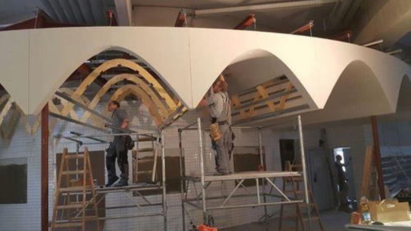 Gipskartonplatten sind unter bestimmten Bedingungen und in gewissen Grenzen alle biegbar. Die große Herausforderung bei geschwungenen, runden oder wellenförmigen Bauteilen aus Gipskarton ist viel mehr die Unterkonstruktion, die die unter Spannung stehenden Platten halten muss. Deshalb haben wir zu den einzelnen Beispielen wo möglich auch in deren Unterwelt der Profile, Abhänger und Holzschablonen geschaut. Die Objekte sollen Anregung sein, neuen „Schwung“ in den Arbeitsalltag bringen und durchaus auch als Ideengeber für das nächste Kundengespräch dienen.
