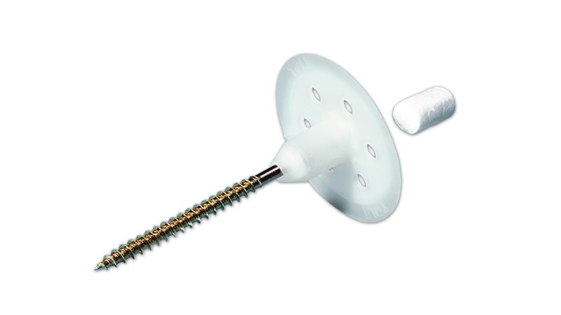 Ist kein Druckluftanschluss oder ein Klammergerät verfügbar oder betragen die Dämmstoffdicken mehr als 140 mm, bietet sich als Alternative ein Tellerbefestiger an. Das Einschrauben der Tellerdübel erfolgt im Regelfall mittels leistungsfähiger Akku-Schrauber mit TORX-Bit.
