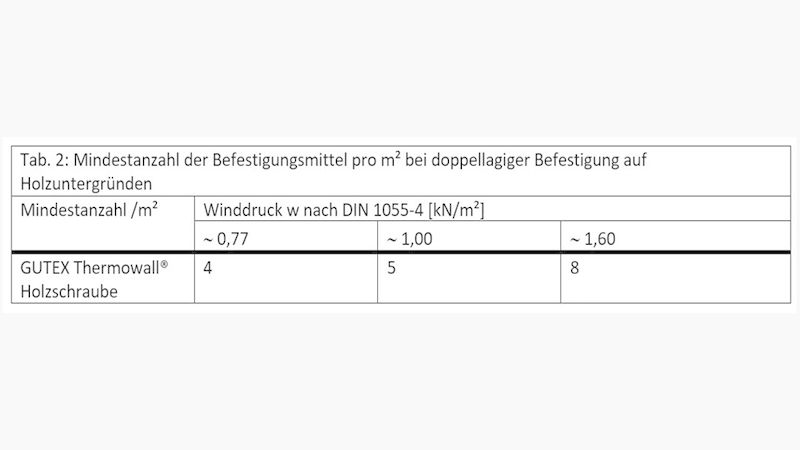 - Die Mindestanzahl der Befestigungsmittel ist Tab. 2 zu entnehmen