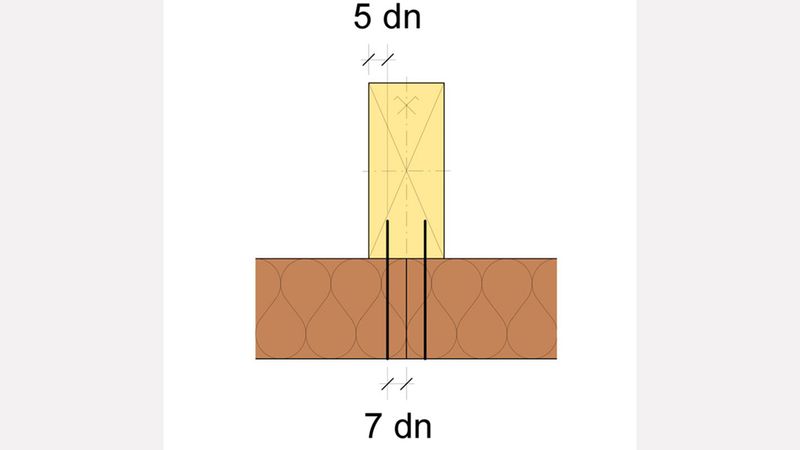 - sind folgende Randabstande einzuhalten: Massivholz-Ständer = 5 ∙ dn / Holzfaserplatte = 7 ∙ dn